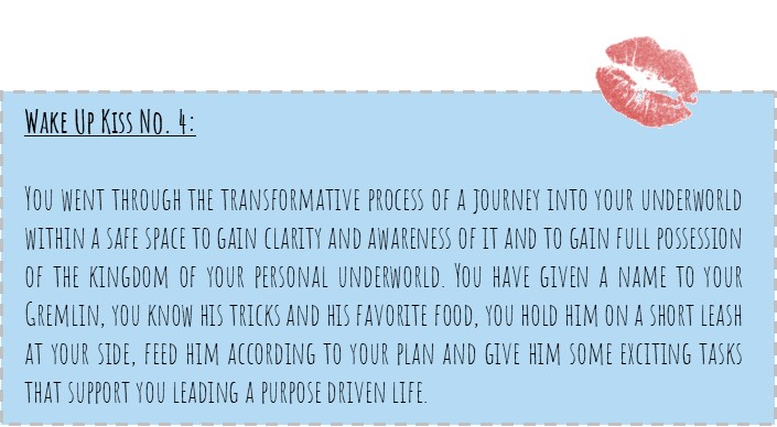 Your destiny is waiting to be actively kissed awake by yourself. But there are some typical counterforces that can prevent you from coming into your own power. Here comes the fourth wake up kiss that you can give yourself if you unconsciously follow this pattern: